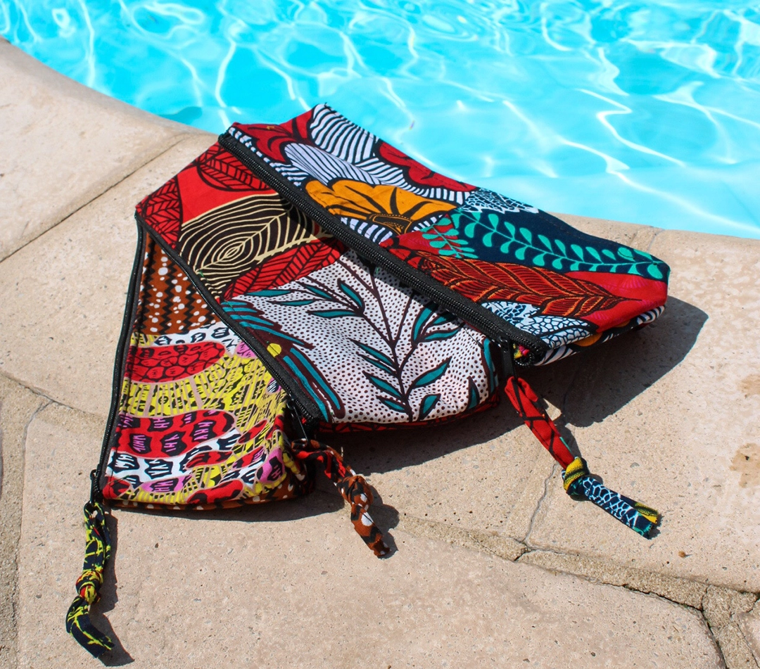 Un cadeau artisanal : recevez une pochette faite main au Burkina Faso, en tissu traditionnel, incluse dans chaque coffret.
